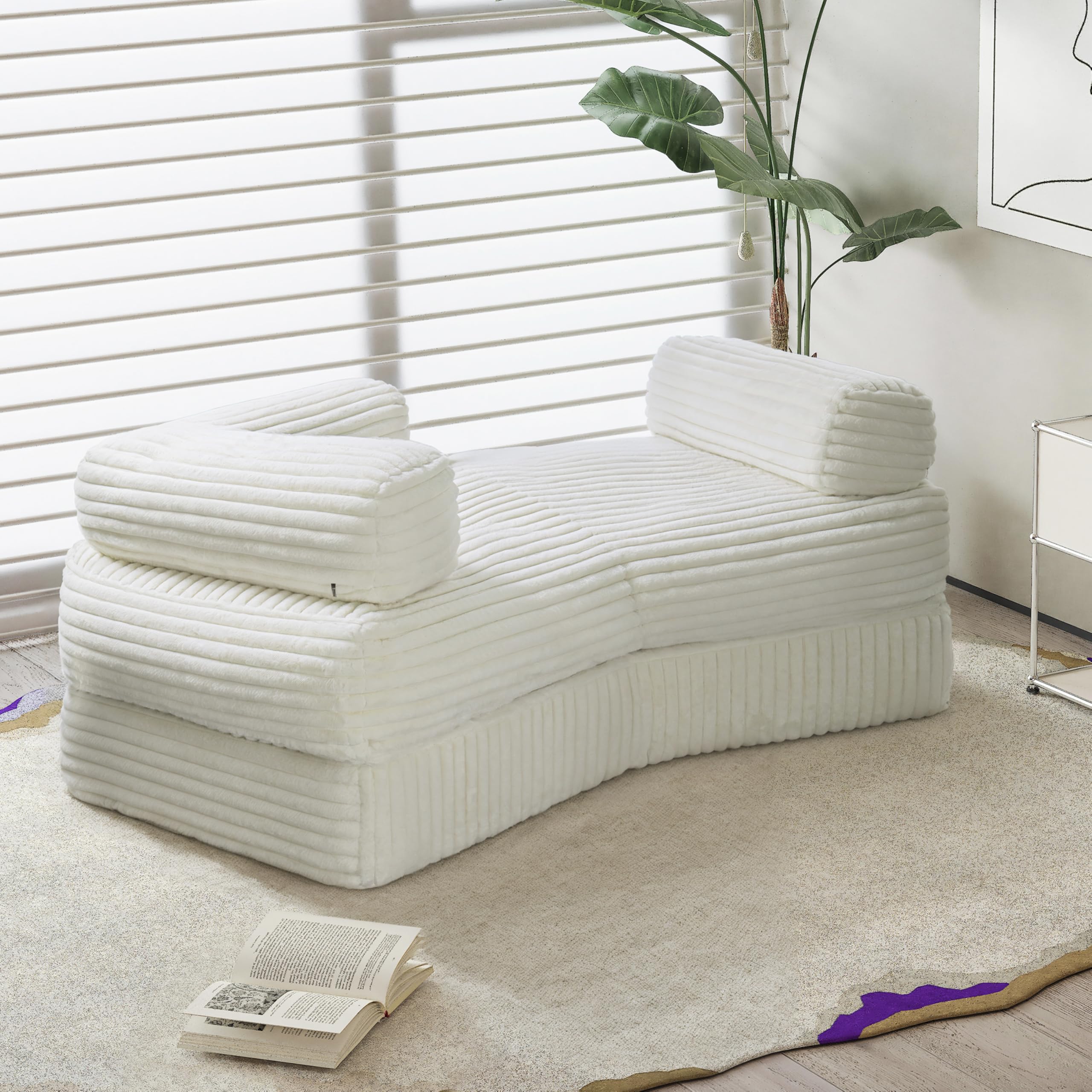 This innovative convertible sofa bed combines ergonomic design with space-saving versatility. Featuring a distinctive zigzag profile with cylindrical bolster armrests, it's crafted from ultra-soft corduroy fabric over dual-layer cushioning (PP cotton + high-density foam). The 35.4" seat width transforms from a comfortable loveseat into a spacious floor bed, making it perfect for small apartments, studios, and multi-purpose living spaces.