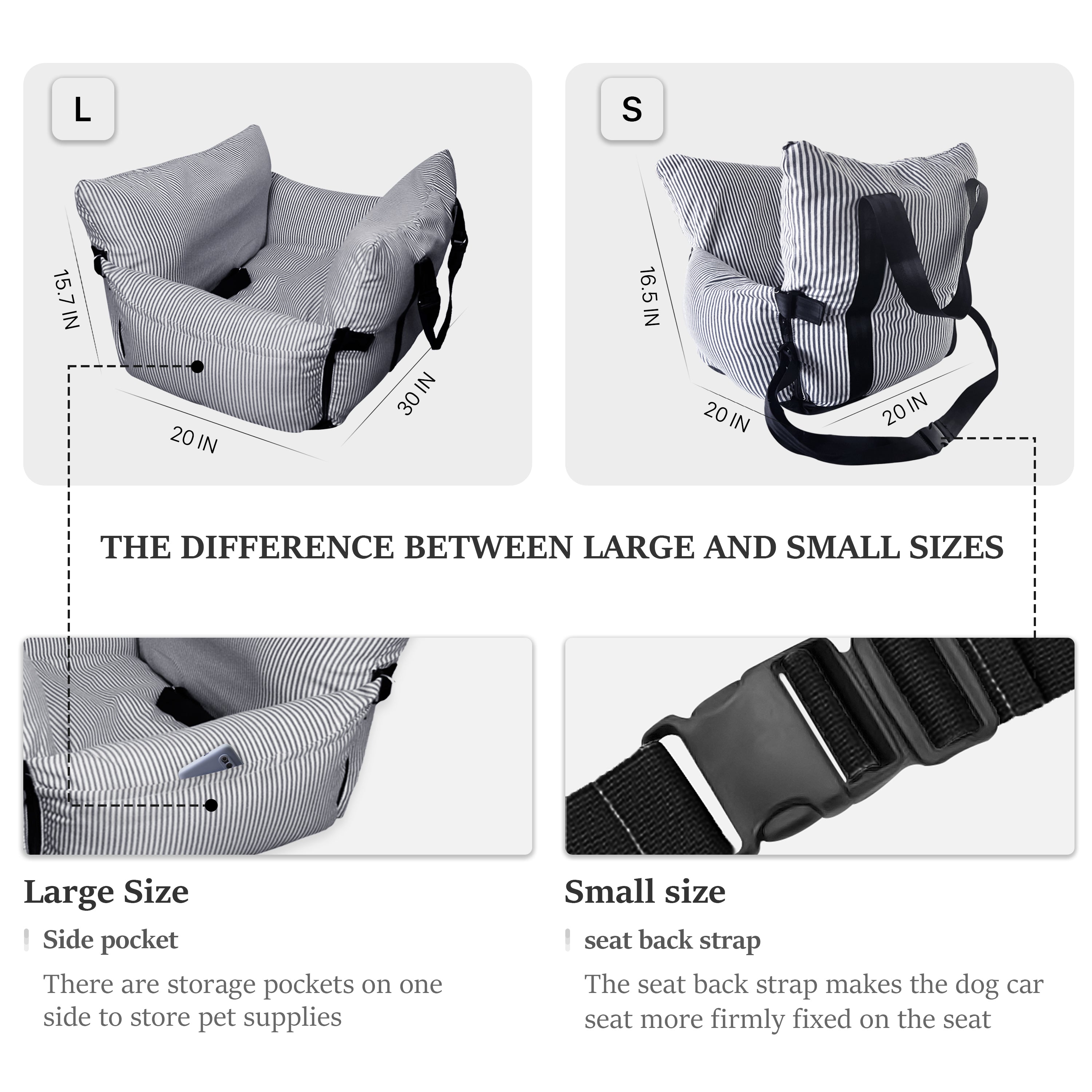 - Größe S – 52 x 52 cm Haustier-Autositz: 2 Handschlaufen und 1 verstellbarer Gurtgurt mit Schnalle. Hängen Sie das verstellbare Gurtband oben am Sitz oder hinter der Rückenlehne auf und passen Sie die Länge des Gurtbands an, um es zu befestigen. Sie können es je nach Bedarf auf dem Vorder- oder Rücksitz platzieren und es passt auf die meisten Arten von Autositzen und Autotypen. Jeder Hundesitz verfügt über eine Hundeleine zum Anschließen des Hundehalsbandes.