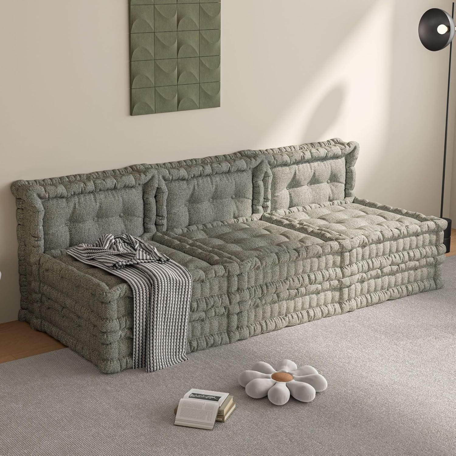 Safety Features: Non-slip bottom treatment keeps cushions stable on hardwood, tile, or carpet. Low-profile design (20" height) reduces fall risk—ideal for homes with children or elderly residents.