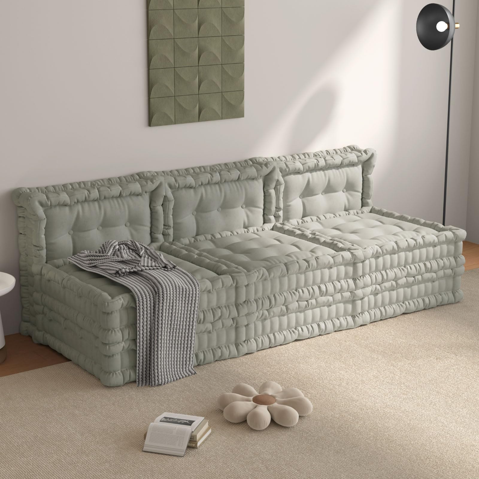 I wasn't sure what to expect with the Convertible Lazy Sofa, Velvet-Light Gray, but it's better than I hoped. I use the individual cushions as floor seating when friends are over for movie nights. It’s become a favorite spot for both me and my cat.
