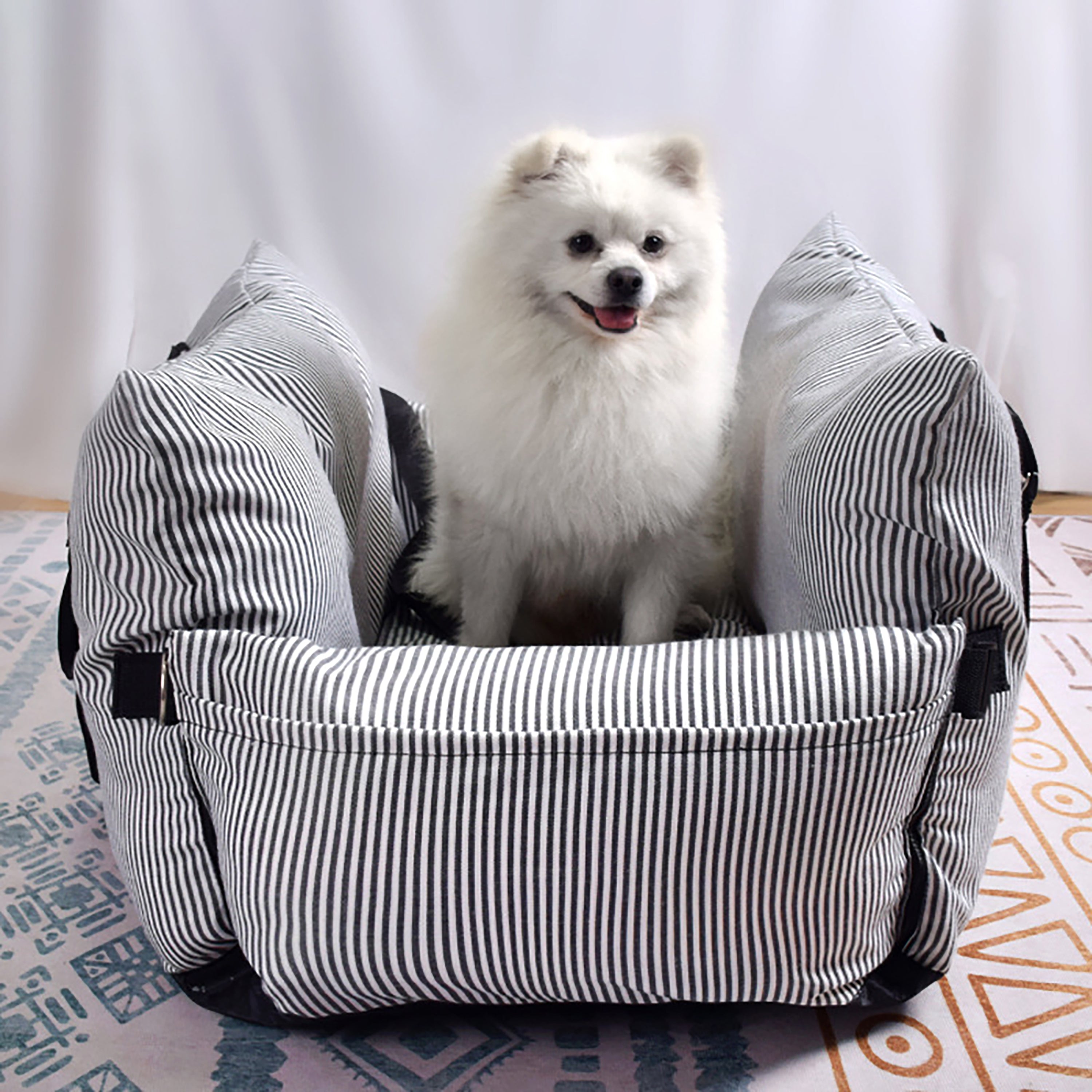 Keep your furry co-pilot safe and comfy with this multi-functional dog car seat! Made with breathable cotton-linen fabric and high-resilience PP cotton padding, this crash-ready booster bed prevents slips during drives, reduces travel anxiety, and doubles as a portable indoor/outdoor pet bed. Includes adjustable straps for universal car compatibility and a built-in safety leash.
