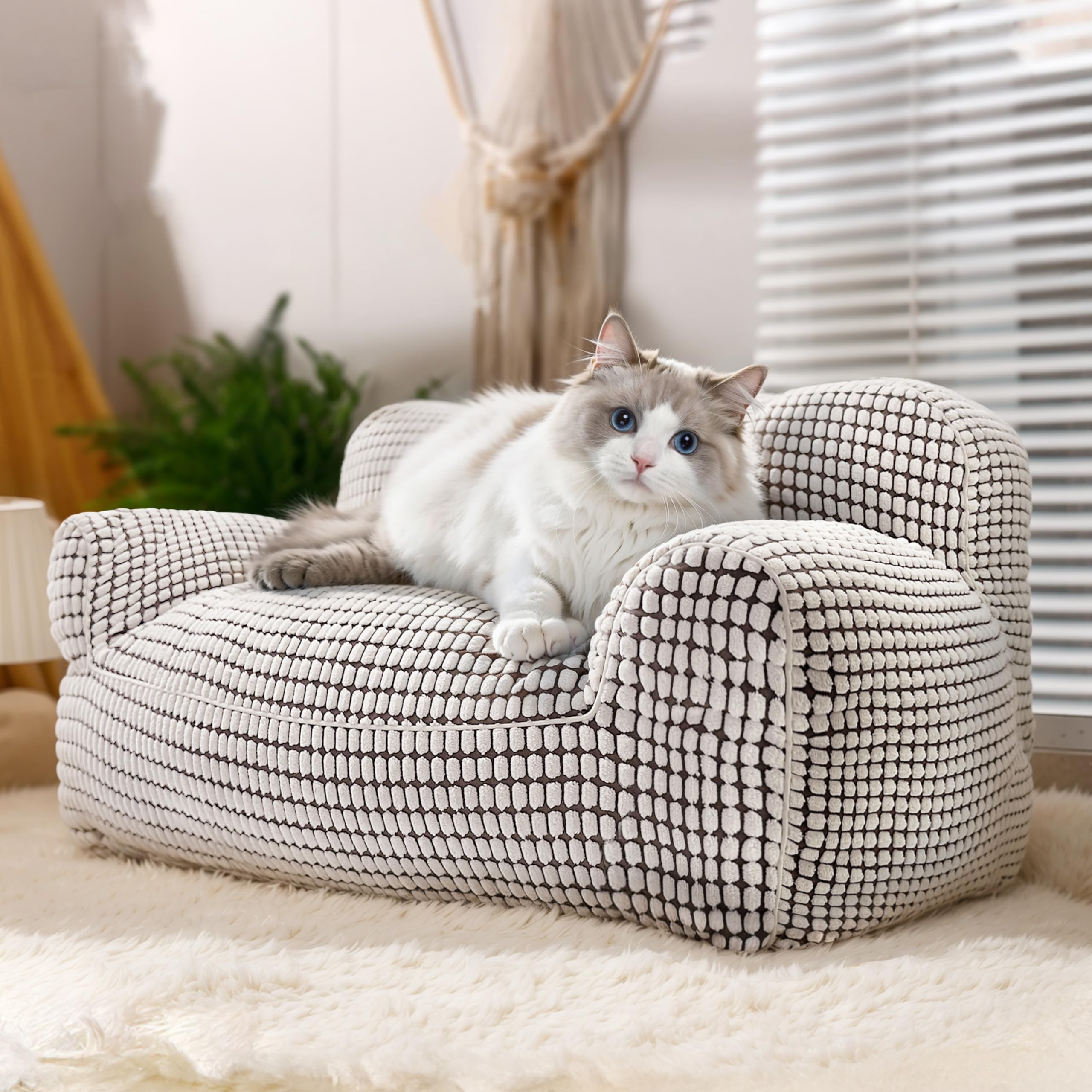 Elevate your pet’s comfort and your home’s style with the Daneey Modern Cat Sofa Bed. Designed for small pets under 30lb, this chic, all-season sofa combines breathable corn grain velvet, machine-washable convenience, and a non-slip base for ultimate safety. Its sturdy yet lightweight structure and dual removable inserts ensure long-lasting coziness, while the neutral design blends effortlessly into any decor.