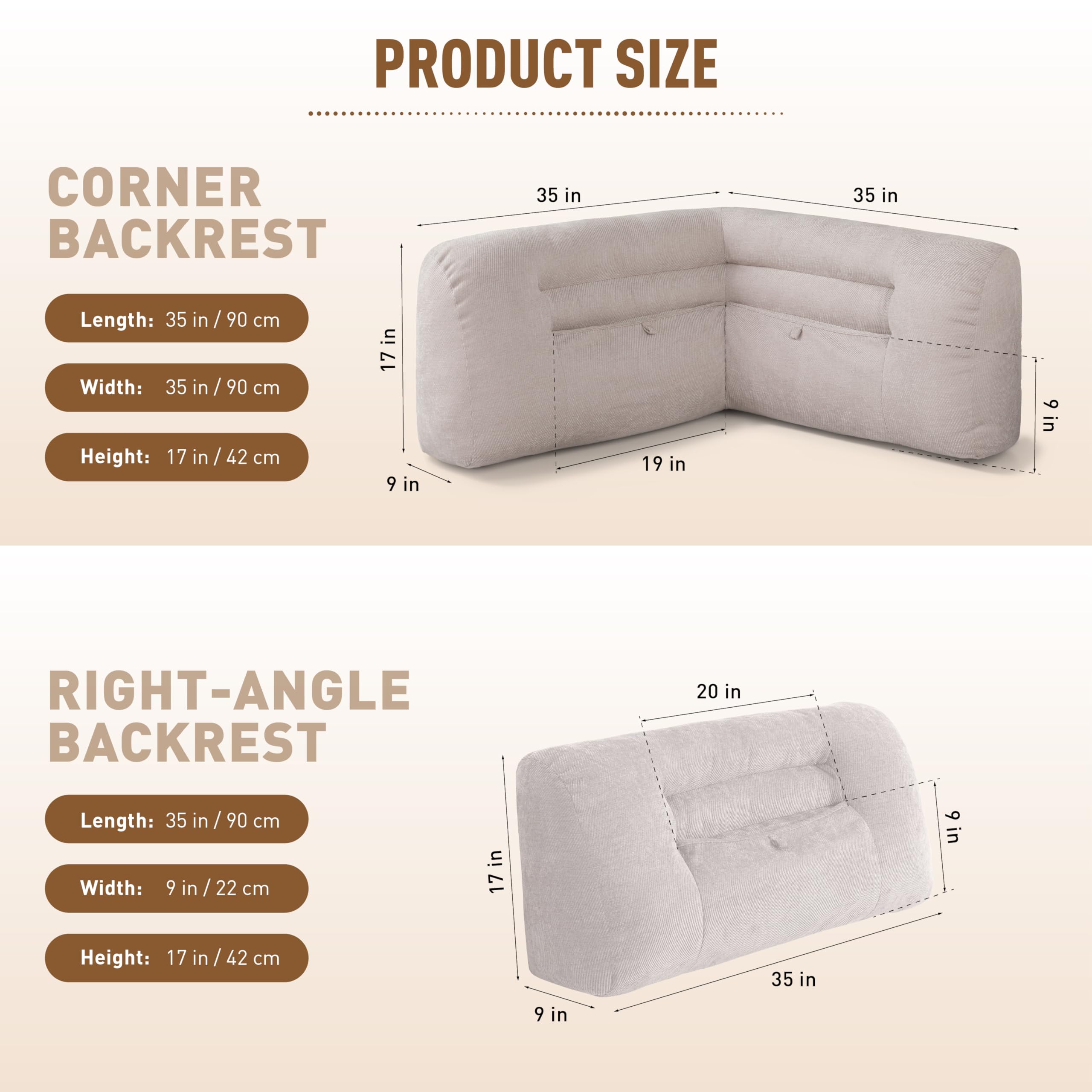 | Size | Corner: 35.4 x 35.4 x 16.5 in |