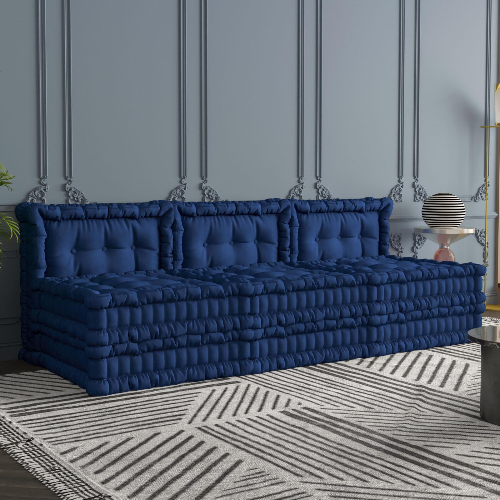 This 3-piece modular set stacks and reconfigures to become a cozy couch, a full-width lounge, or a comfy floor mattress for guests. The plush velvet cover feels luxurious to the touch, while dense polyester fill keeps its shape after daily lounging, reading or gaming. Each oversized floor pillow can be used on its own, and multiple sets create an L-shaped sectional. No assembly, no tools—just fluff after unboxing and relax. Removable covers make cleaning simple, so your space looks as good as it feels.